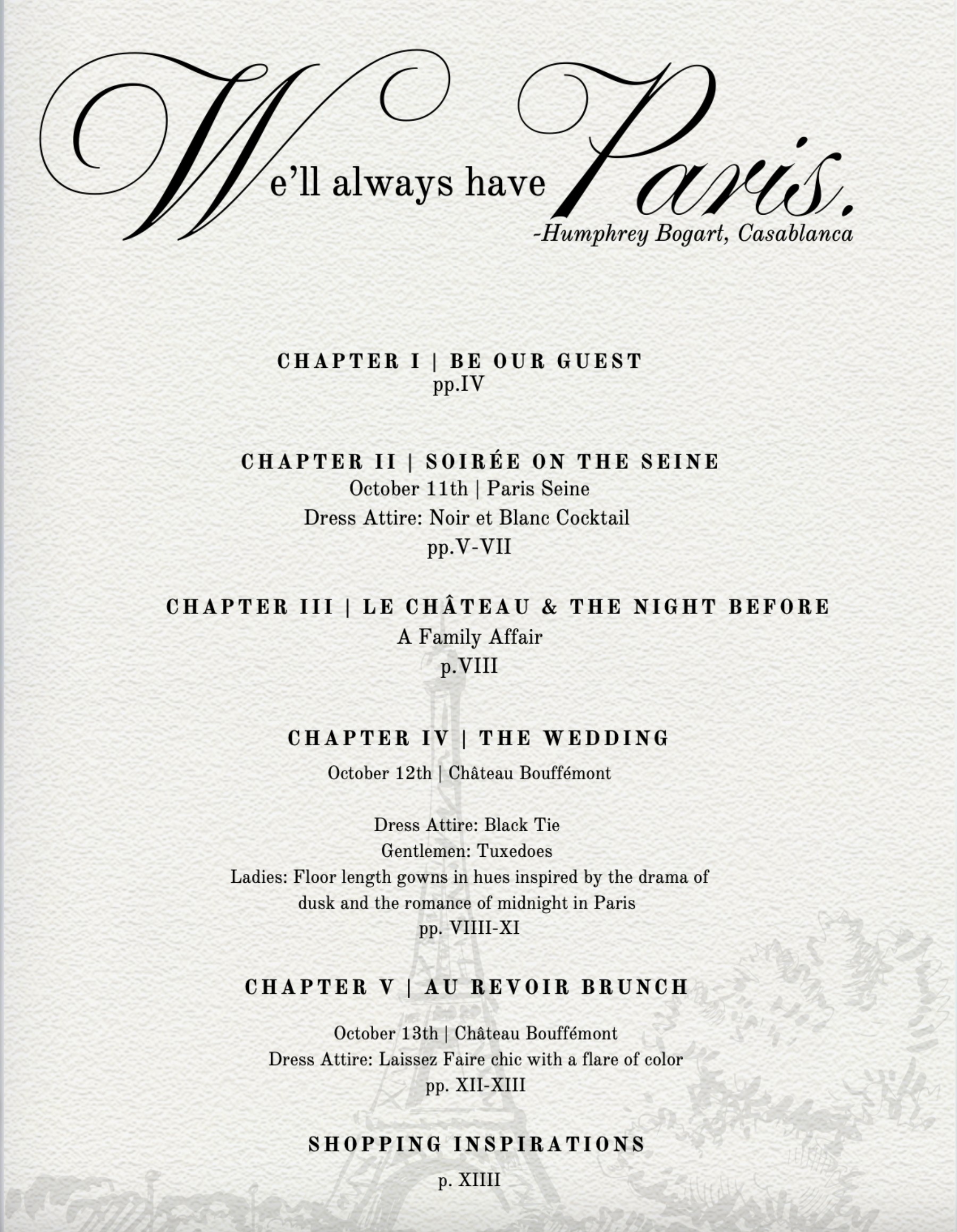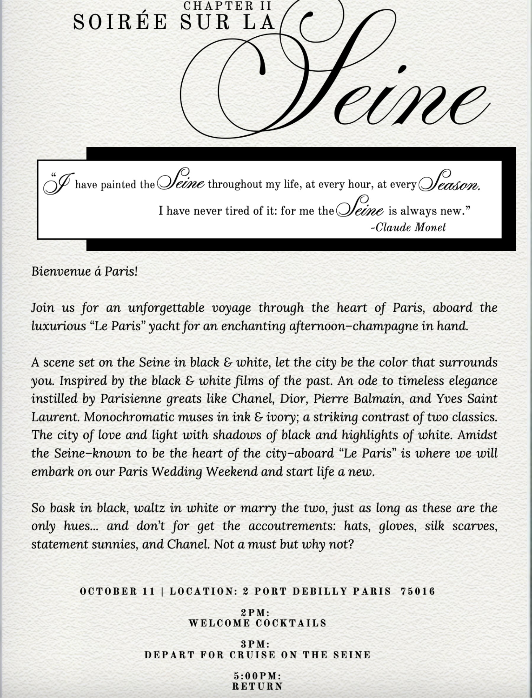 Welcoming our family & friends with a scenic boat ride along the Seine to take in Paris’s beauty and commense the celebrations!
